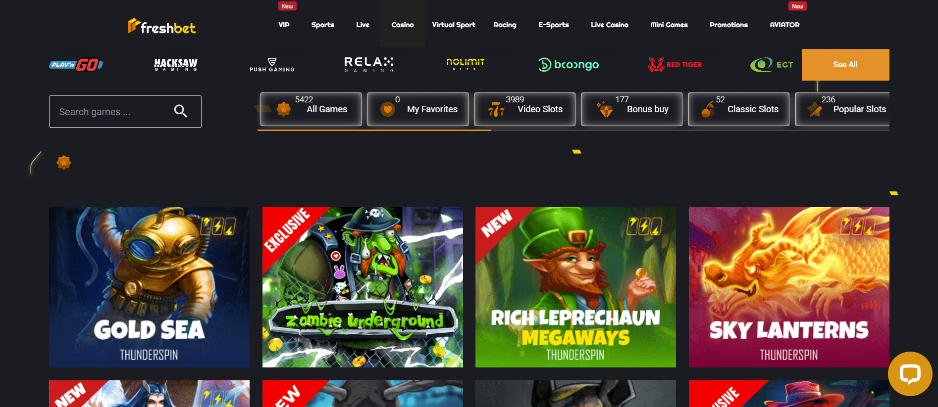 Freshbet offers games from more than 60 premier game providers, such as Playson, Habanero, ELK Studios, Fugaso, Wazdan, Push Gaming, Spinmenal, and Thunderkick.