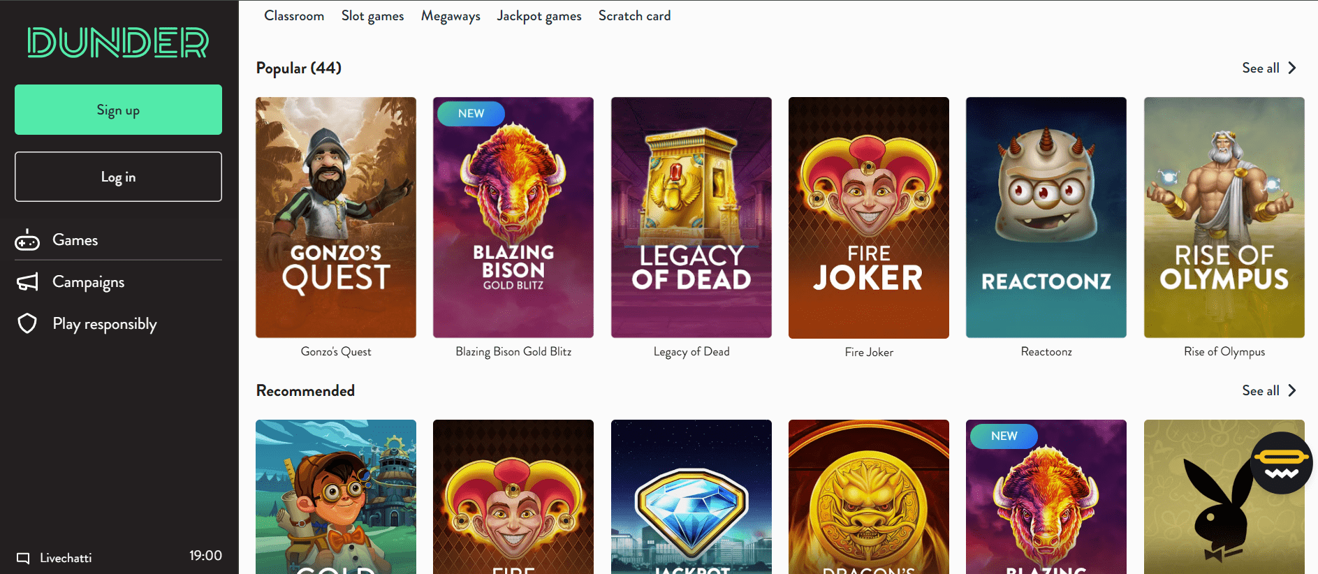 Dunder Casino on trendikäs online-kasino, jossa on yli 1000 erilaista peliä, yli 500 mobiililaitteilla, useilta johtavilta alustoilta, mukaan lukien NetEnt, Microgaming, Play’n GO, Quickspin, NextGen Gaming, SGI, IGT, WMS, Bally, Barcrest, Edict, Thunderkick, Elk ja Bettionersoft sekä Evolin live-kaupat. Monet näistä peleistä ovat pelaajien saatavilla sekä kotona että tien päällä. Kasino luotiin vuonna 2016 modernilla käyttöliittymällä, joka tarjoaa helpon pääsyn mihin tahansa verkkosivuston osaan. Dunder Casinoa säätelevät Maltan ja Ruotsin lait.