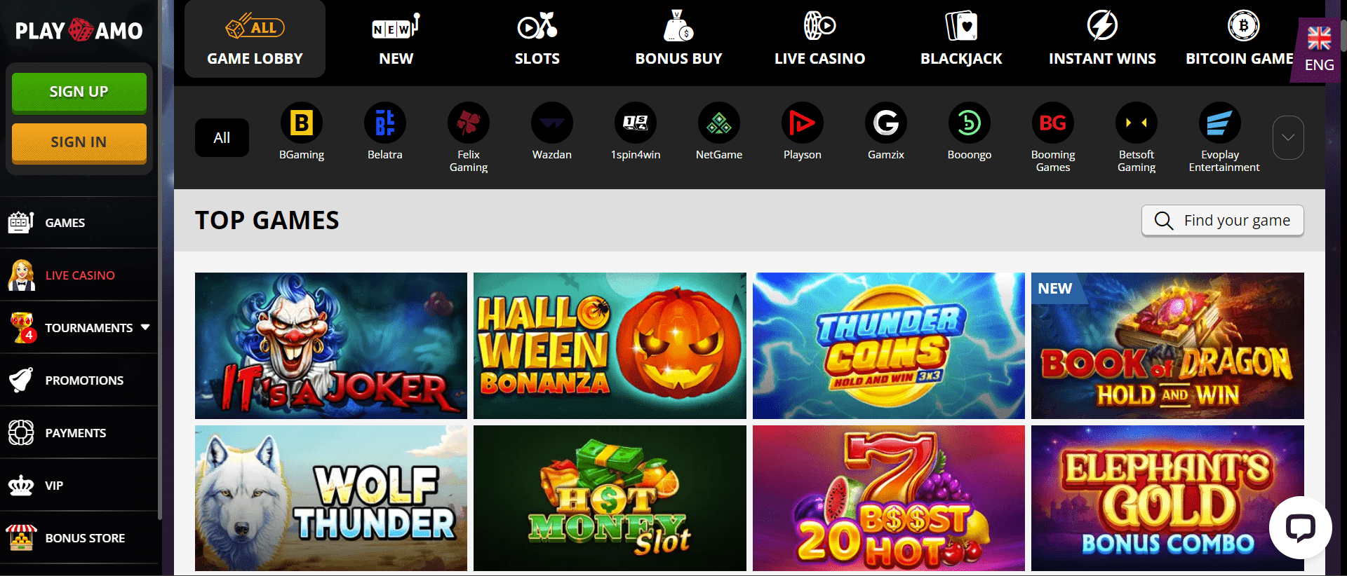 Playamo.net è un sito esclusivamente per giochi gratuiti. Puoi provare i giochi del casinò in modalità demo. Playamo.net è destinato alla promozione in televisione e radio. Offre ai giocatori uno sguardo alla varietà di giochi da casinò offerti dal casinò online. Se sei interessato a giocare con soldi veri, dai un'occhiata alla nostra recensione del casinò Playamo.